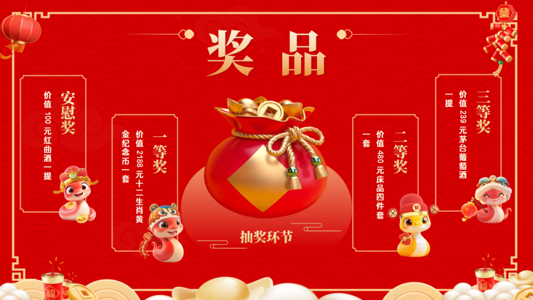 在節(jié)目表演過程中,還穿插了激動(dòng)人心的抽獎(jiǎng)環(huán)節(jié)。三輪抽獎(jiǎng),驚喜連連。多種多樣的獎(jiǎng)項(xiàng),每一位同事都收獲了屬于自己的那份幸運(yùn)。抽獎(jiǎng)的每一次揭曉,都伴隨著陣陣歡呼與掌聲,將年會(huì)的氛圍推向了高潮。豐厚的獎(jiǎng)品讓員工們驚喜連連,歡呼聲不斷。