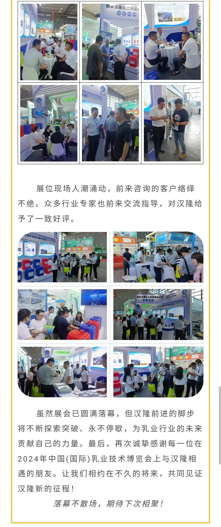 漢隆公司參加中國(guó)乳制品工業(yè)協(xié)會(huì)第三十次年會(huì)暨2024年中國(guó)(國(guó)際)乳業(yè)技術(shù)博覽會(huì)圓滿收官!